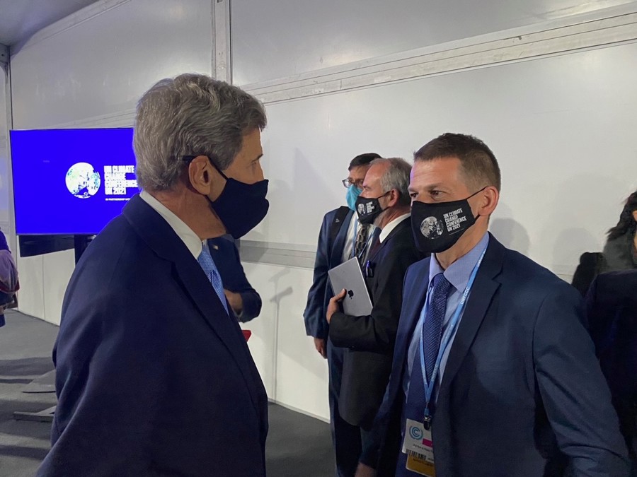Eftir eitt tiltak um eina veðurlagsneutrala skipaferðslu í 2050, skifti løgmaður orð við fyrrverandi amerikanska uttanríkisráðharran John Kerry, ið nú er serligur sendiharri í veðurlagsmálum hjá amerikonsku stjórnini.