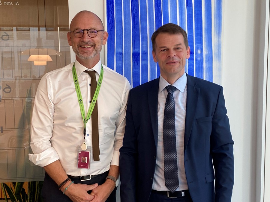 Løgmaður og Hanus Jacobsen, leiðari á sølu- og framleiðsludeildini hjá Bakkafrosti í USA.