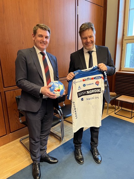 Løgmaður bar týska varakanslaranum føroyska landsliðstroyggju í gávu og fekk ein EM-hondbólt frá varakanslaranum.