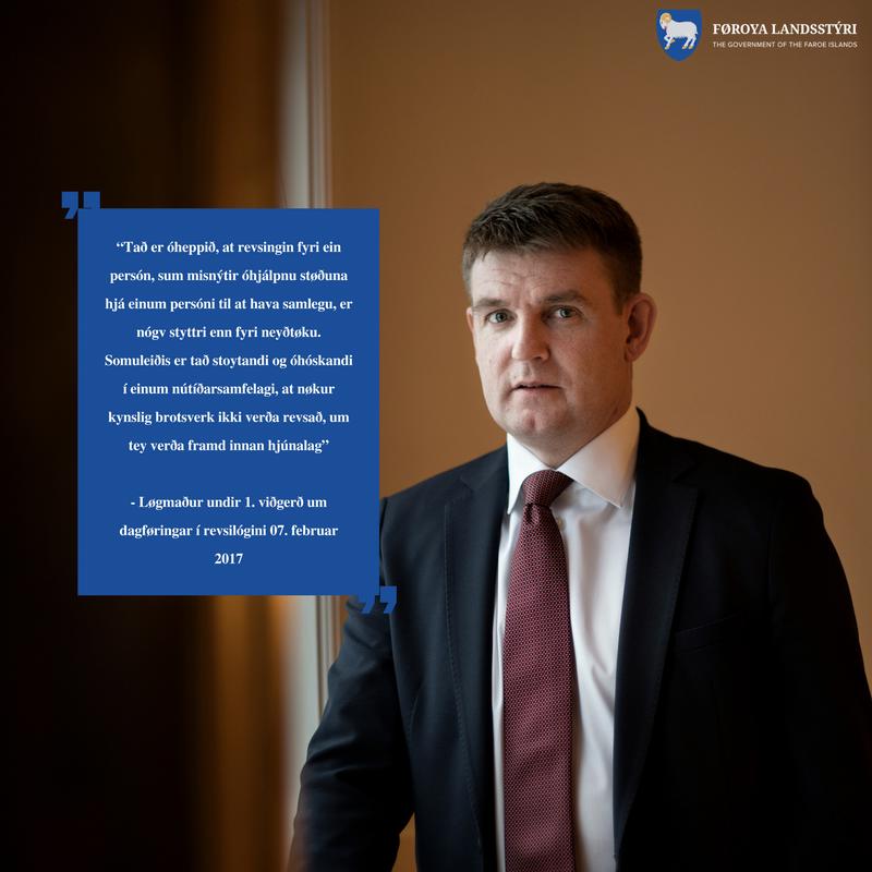 Løgmaður vísti í røðu síni á, at sannførandi ítróttaavikini uttanlands hava týdning fyri okkum sum tjóð, tí okkara samanhald, samleiki og umdømi úti í heimi styrknar enn meira, tá ið okkaraítróttarfólk klára seg væl í altjóða kappingum. Haraftrat hugleiddi løgmaður um leiklutin hjá inniróðri í Føroyum.