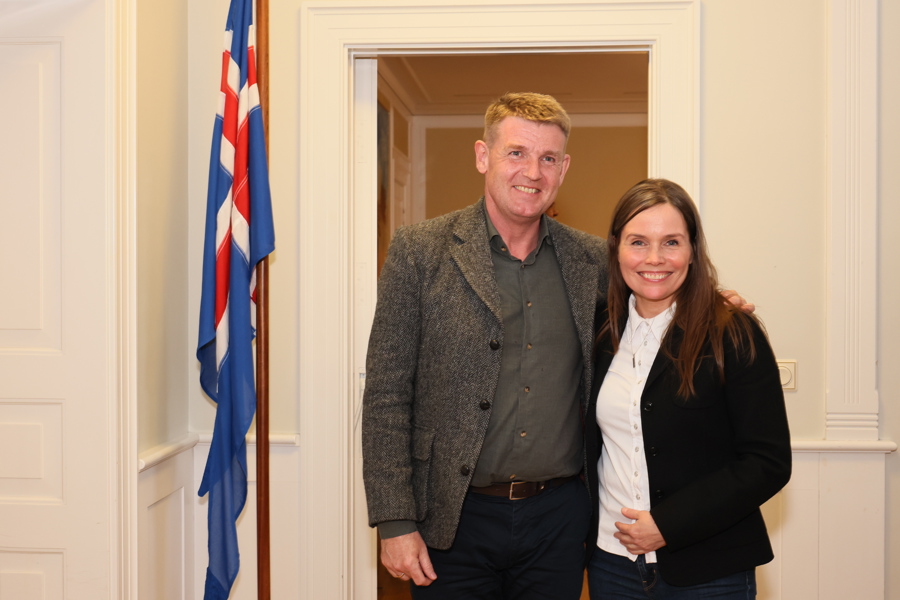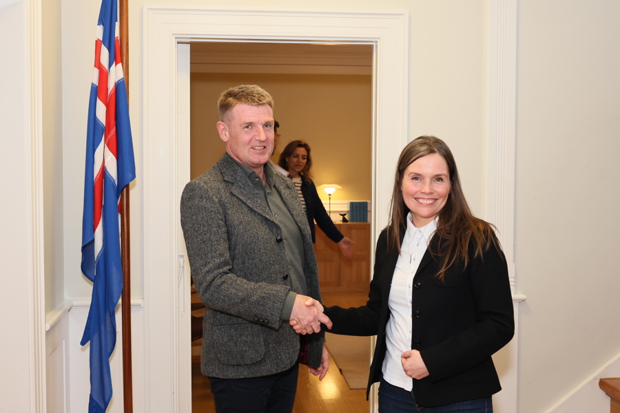 Løgmaður og Katrín Jakobsdóttir, íslendskur forsætisráðharri, hittast á forsætisráðharraskrivstovuni í Reykjavík.